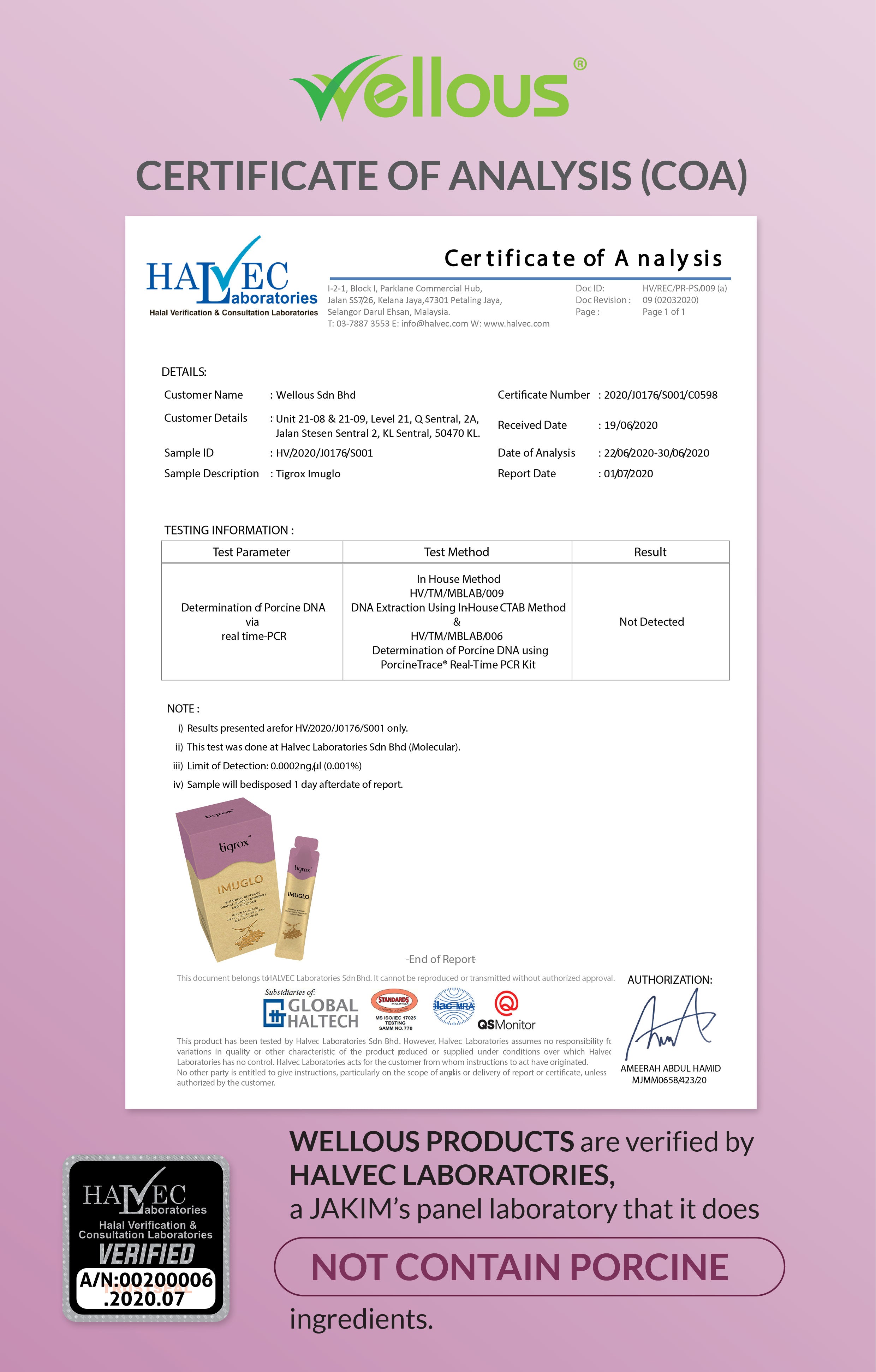 Tigrox Imuglo is an immunity-boosting botanical drink designed to support your body’s natural defense system. Formulated with Elderberry, Fucoidan (Mekabu seaweed extract) and Vitamin C, Imuglo helps strengthen immunity, soothe respiratory sensitivity and support healthier daily protection.