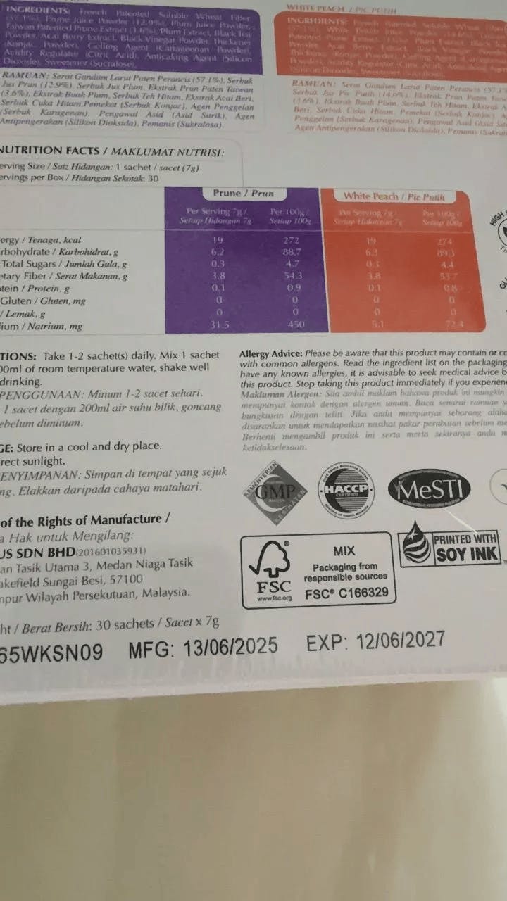 - NUTRALLAX® Prune Extract – patented prune extract designed to support metabolic enzyme activation and digestive regularity.